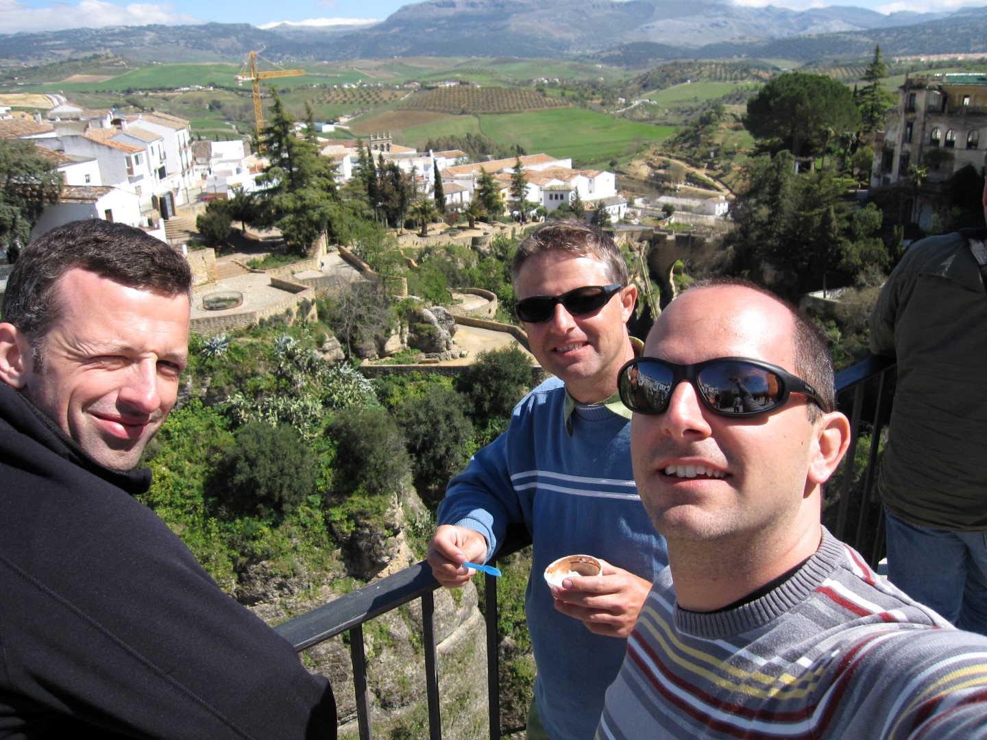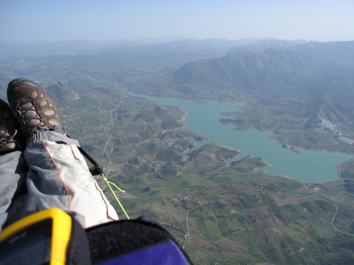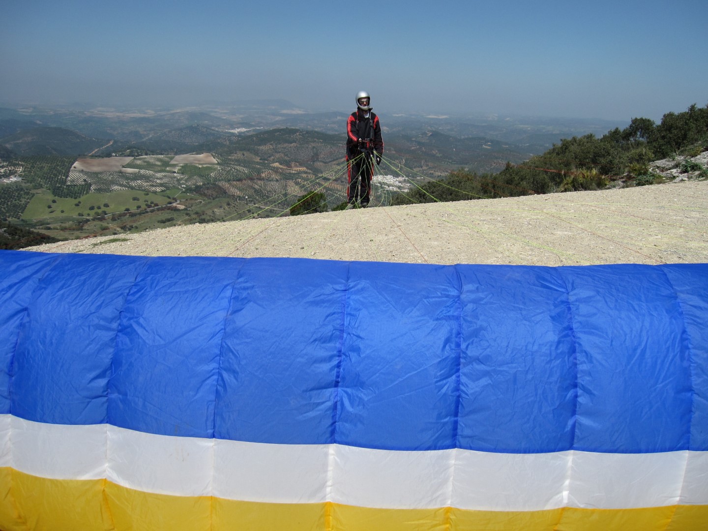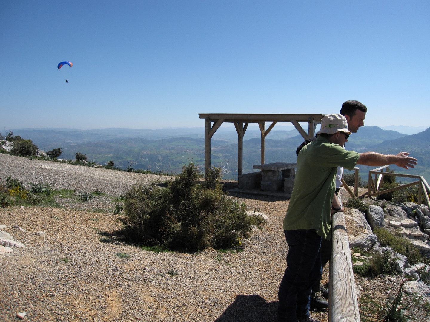 Am nächsten Tag war tierisch viel Wind aber schönes Wetter und wir besuchten Ronda und verbrachten den Tag mit Sigtseeing, Tapas und Canas (Bier). Schliesslich muss man seine XC-Ziele auch mal von unten ansehen :-). Am nächsten Tag war dann fliegen vom Hausberg angesagt (Sierra de Lijar), welcher Startplätze nach SE, S, NO, NW und W anbietet. Der Startplatz ist auf ca. 1000 MüM und wir konnten auf etwa 1800M auf drehen und flogen bis el Gastor (8 km). Am Abend gab es mit allen Gleitschirmlern eine All-Inclusive Paella-Gelage wo wir ordentlich beim Wein zu langten. Dies hatte zur Folge, dass am nächsten Tag Bernie und ich nach Ronda flogen (ca. 30km) und Simeon mit dickem Schädel am Boden blieb.